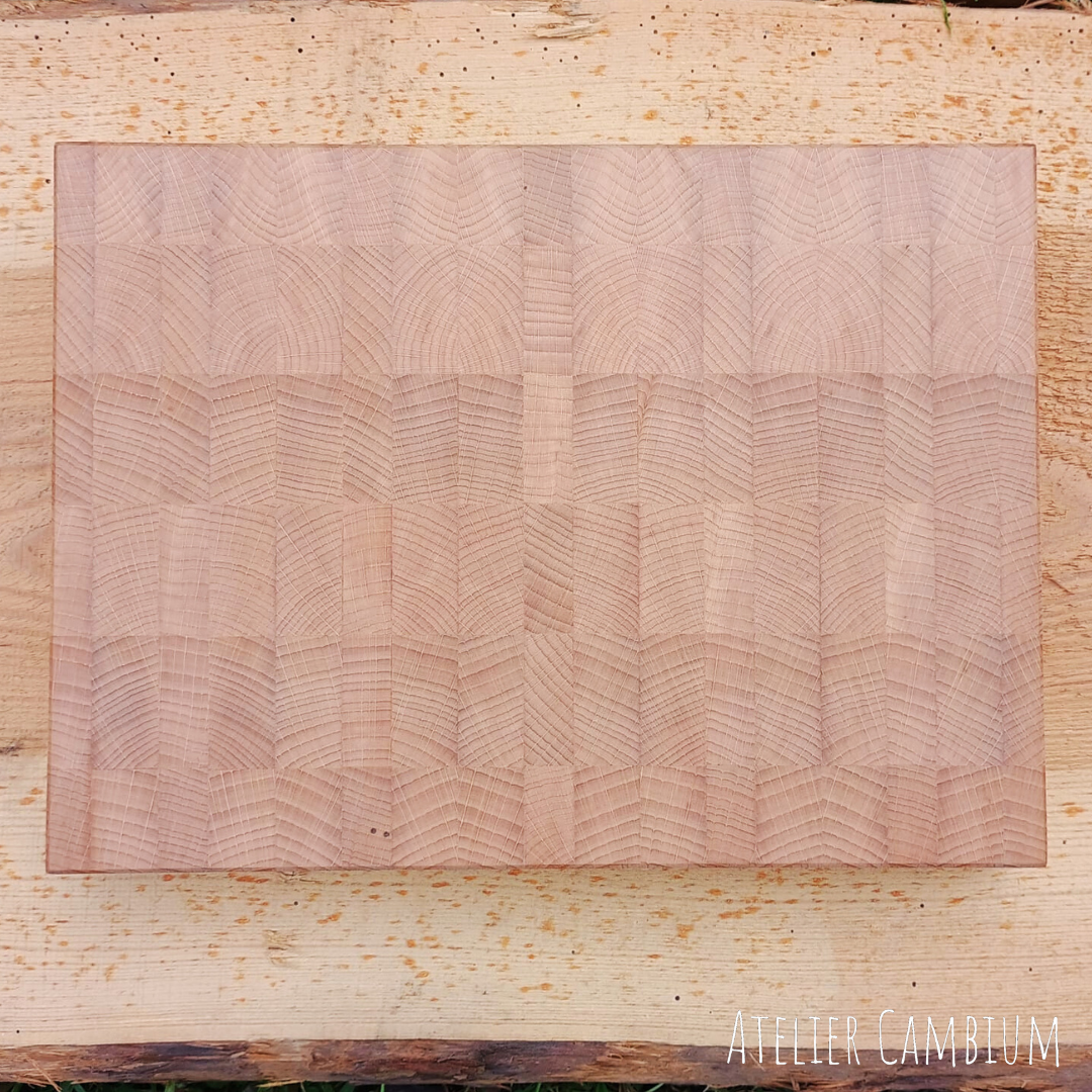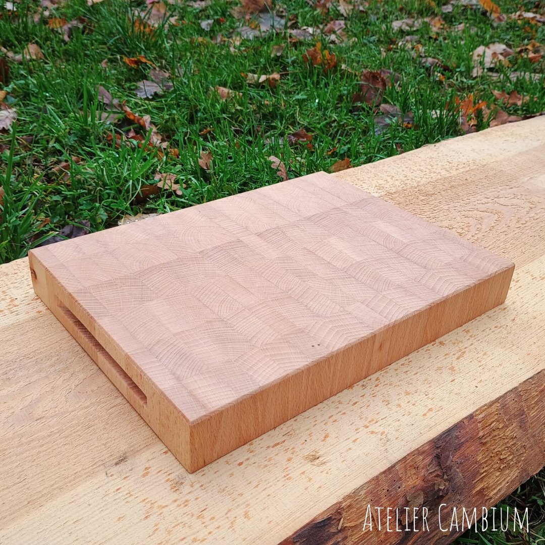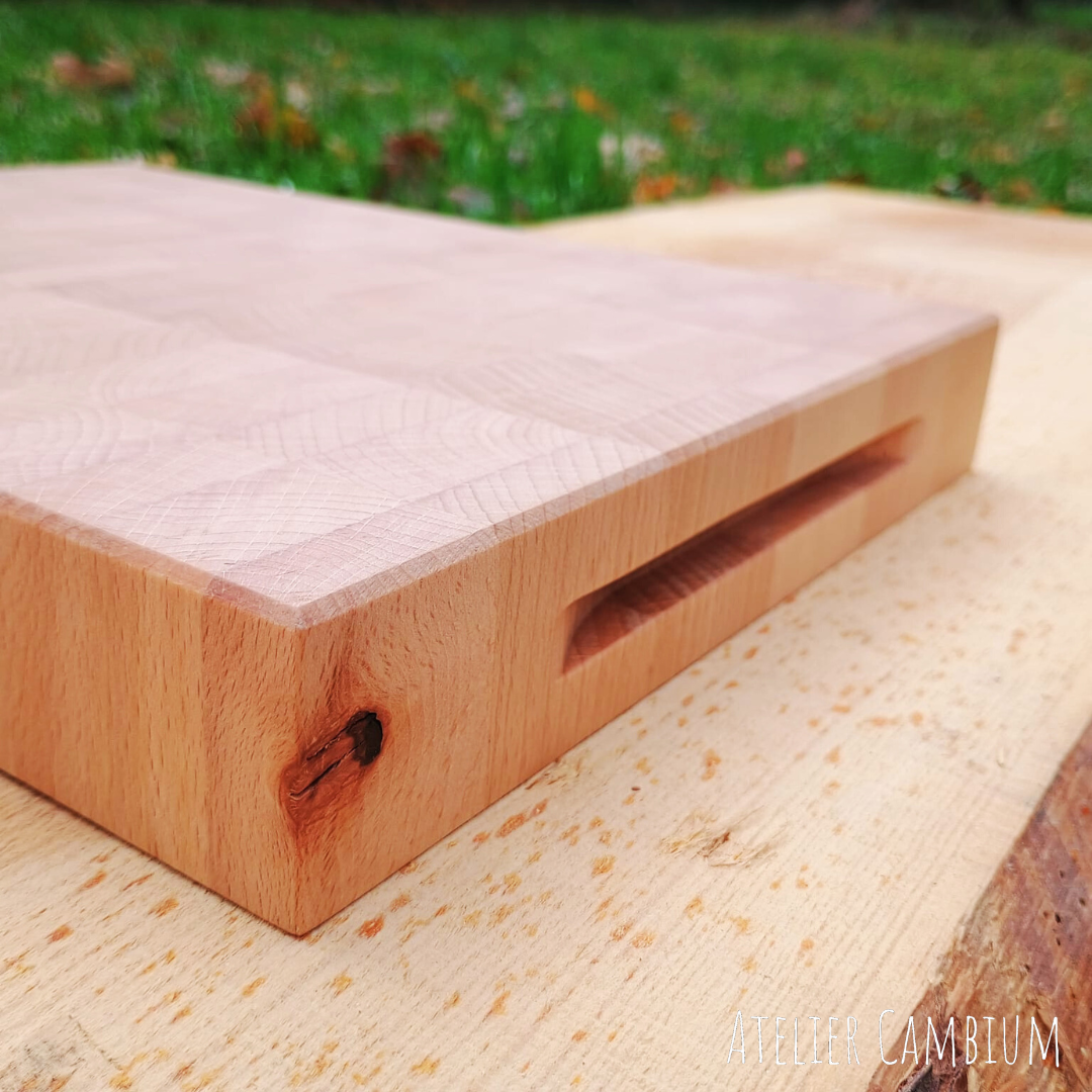 Billot en hêtre massif, façonné à la main dans mon atelier d’ébénisterie à Sainte-Jamme-sur-Sarthe, près du Mans.